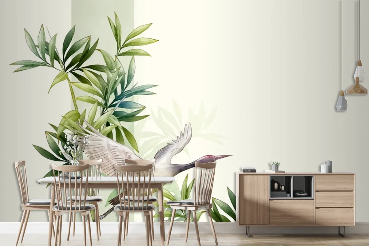 Asya Çiçek Suluboya Kuşlar Duvar Kağıdı