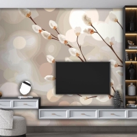 Baharı Anlatan Beyaz Çiçekli Bir Dal Tv Arkası Duvar Kağıdı