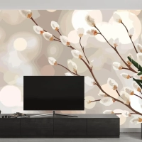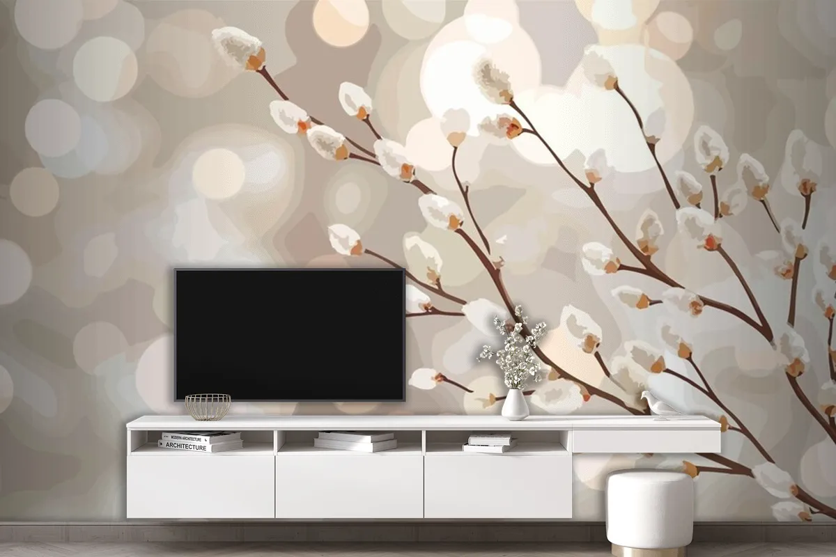 Baharı Anlatan Beyaz Çiçekli Bir Dal Tv Arkası Duvar Kağıdı