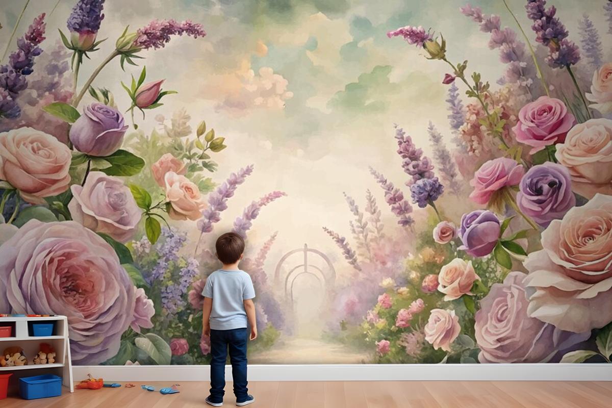 Bahçe Çocuk Odası Duvar Kağıdı Nden Esinlenerek Suluboya Arka Plan