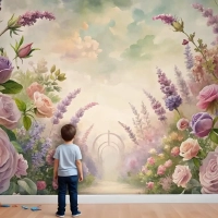 Bahçe Çocuk Odası Duvar Kağıdı Nden Esinlenerek Suluboya Arka Plan