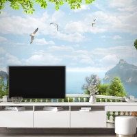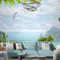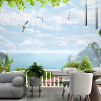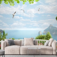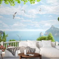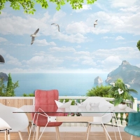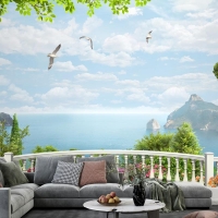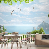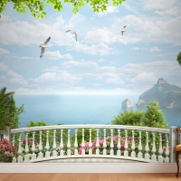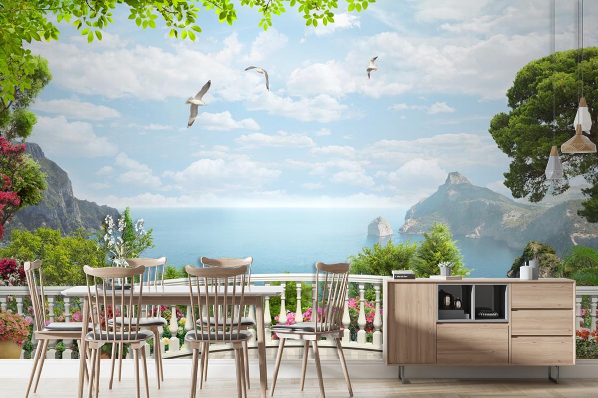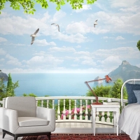 Bahçeli Balkon Ve Deniz Manzarası Duvar Kağıdı