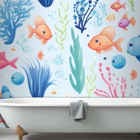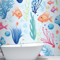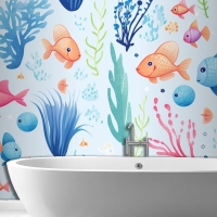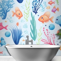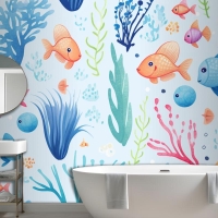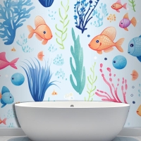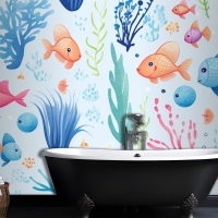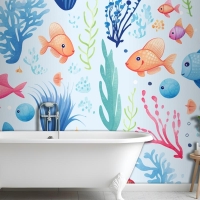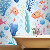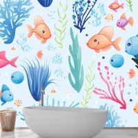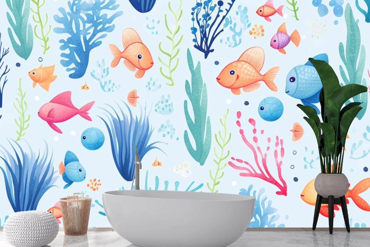 Balıklar Ve Mercanlarla Renkli Bir Sualtı Sahnesi Banyo Duvar Kağıdı