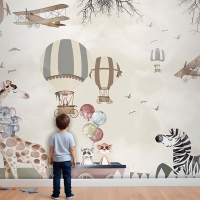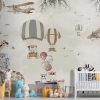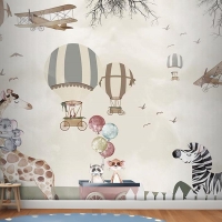 Balonlar Uçaklar Sevimli Hayvanlar Çocuk Kağıdı