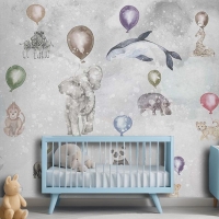 Balonlar Ve Sevimli Hayvanlar Çocuk Odası Duvar Kağıdı