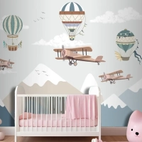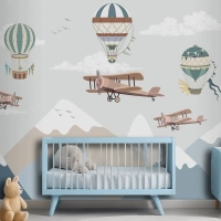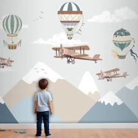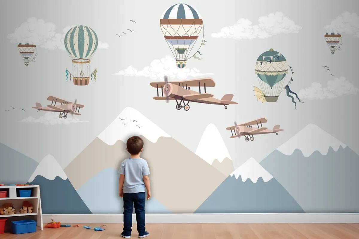 Balonlar Ve Uçaklar Ile Dağlar Çocuk Odası Duvar Kağıdı