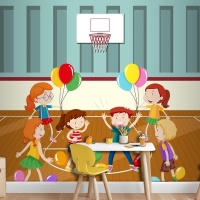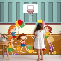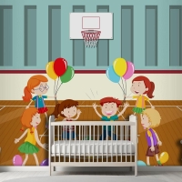 Balonlarla Fiziksel Aktivite Yapan Çocuklar Çocuk Odası Duvar Kağıdı