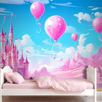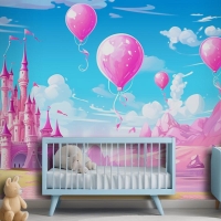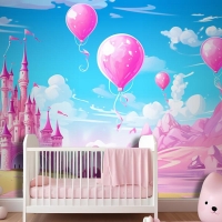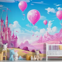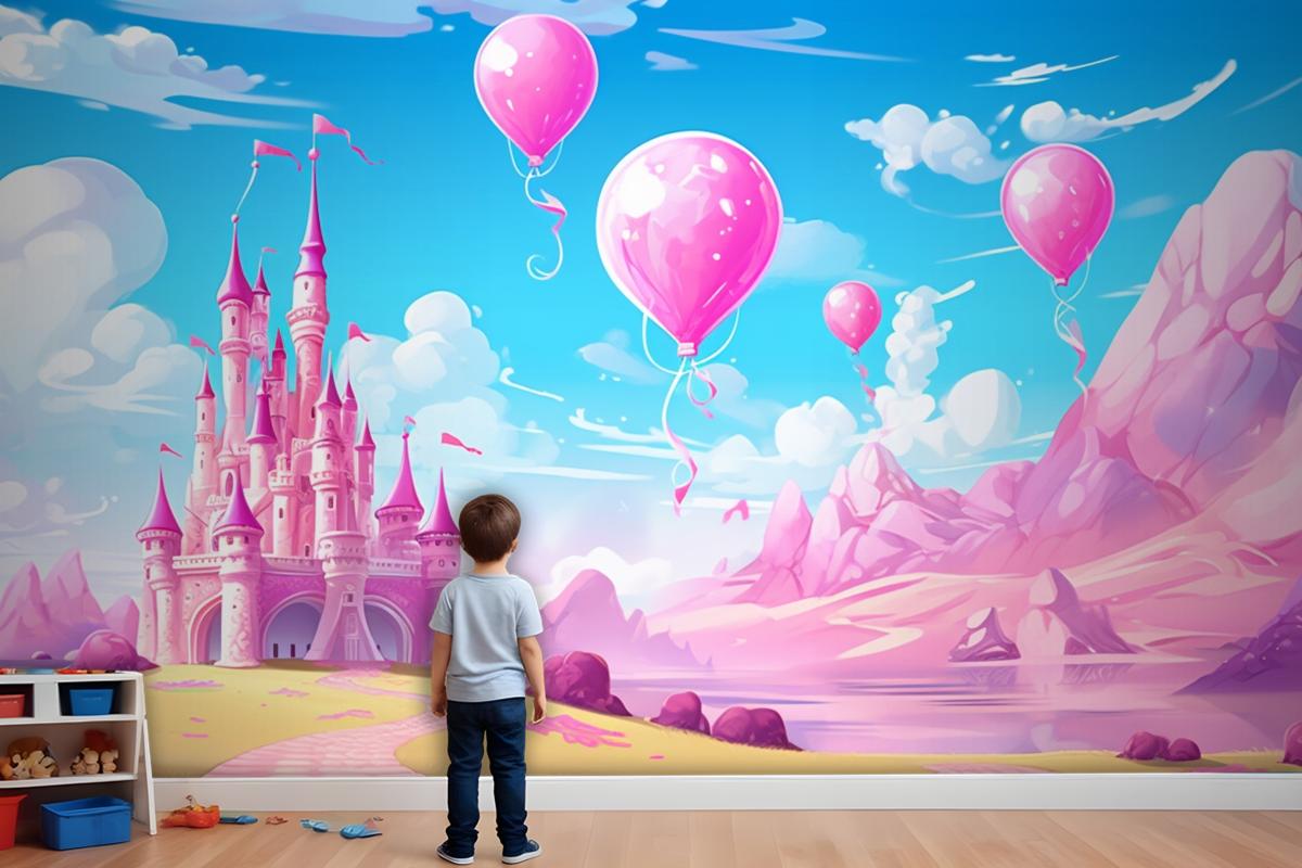 Balonlu Kale Ve Arka Planda Kale Çocuk Odası Duvar Kağıdı