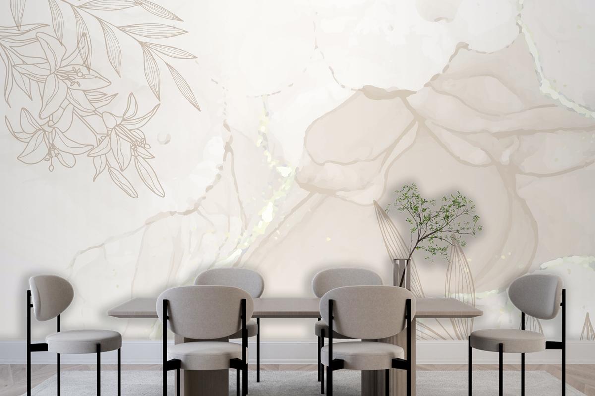 Banner Ve Çerçeve Yemek Odası Duvar Kağıdı Suluboya Çiçek Ve Yaprak Arkaplan