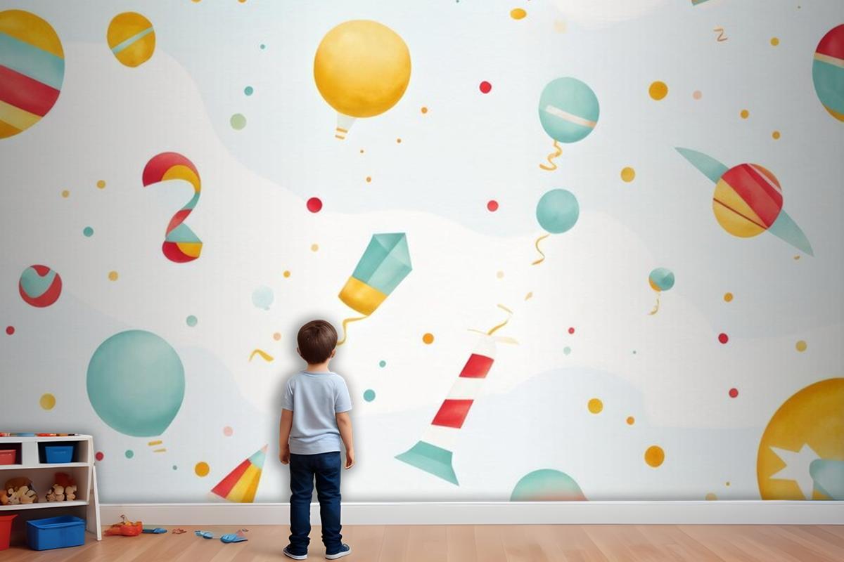 Bayraklı Renkli Balonlar Bayraklı Renkli Balonlar Çocuk Odası Duvar Kağıdı