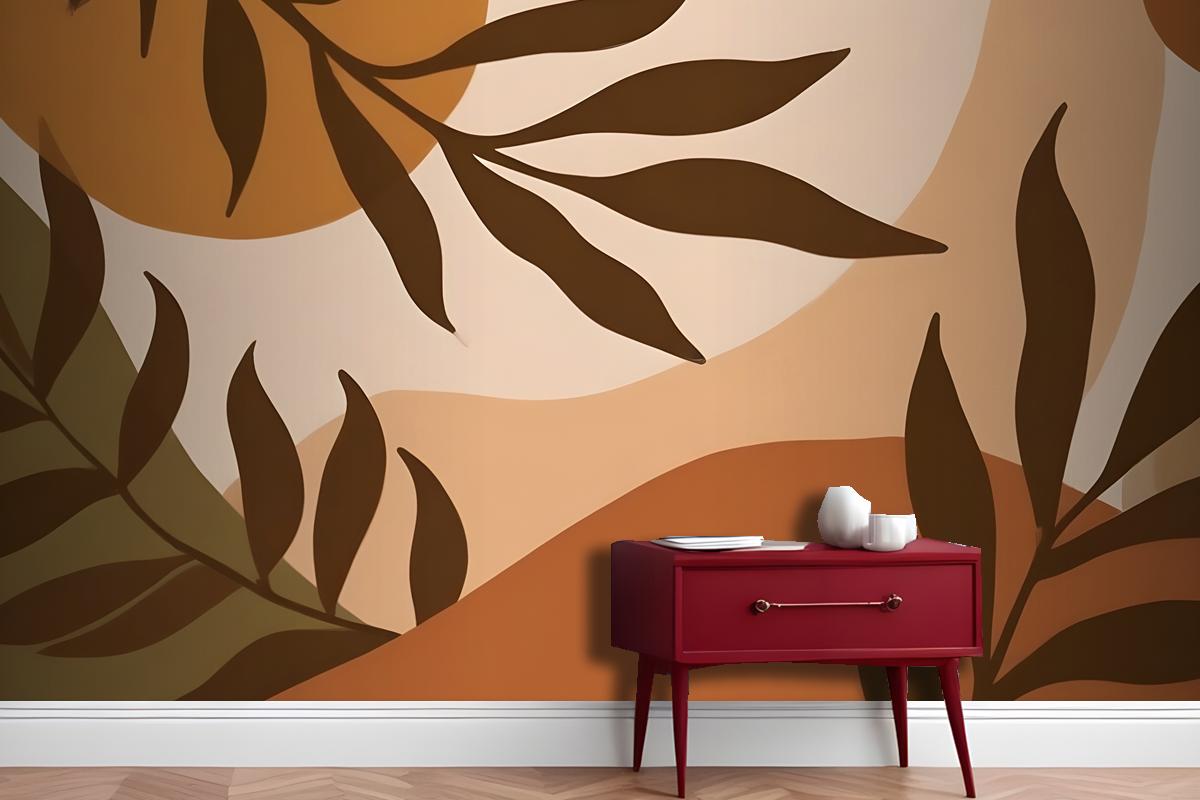 Bej Antre Hol Koridor Duvar Kağıdı Duvar Önünde Sıcak Renklerde Sonbahar Yaprakları