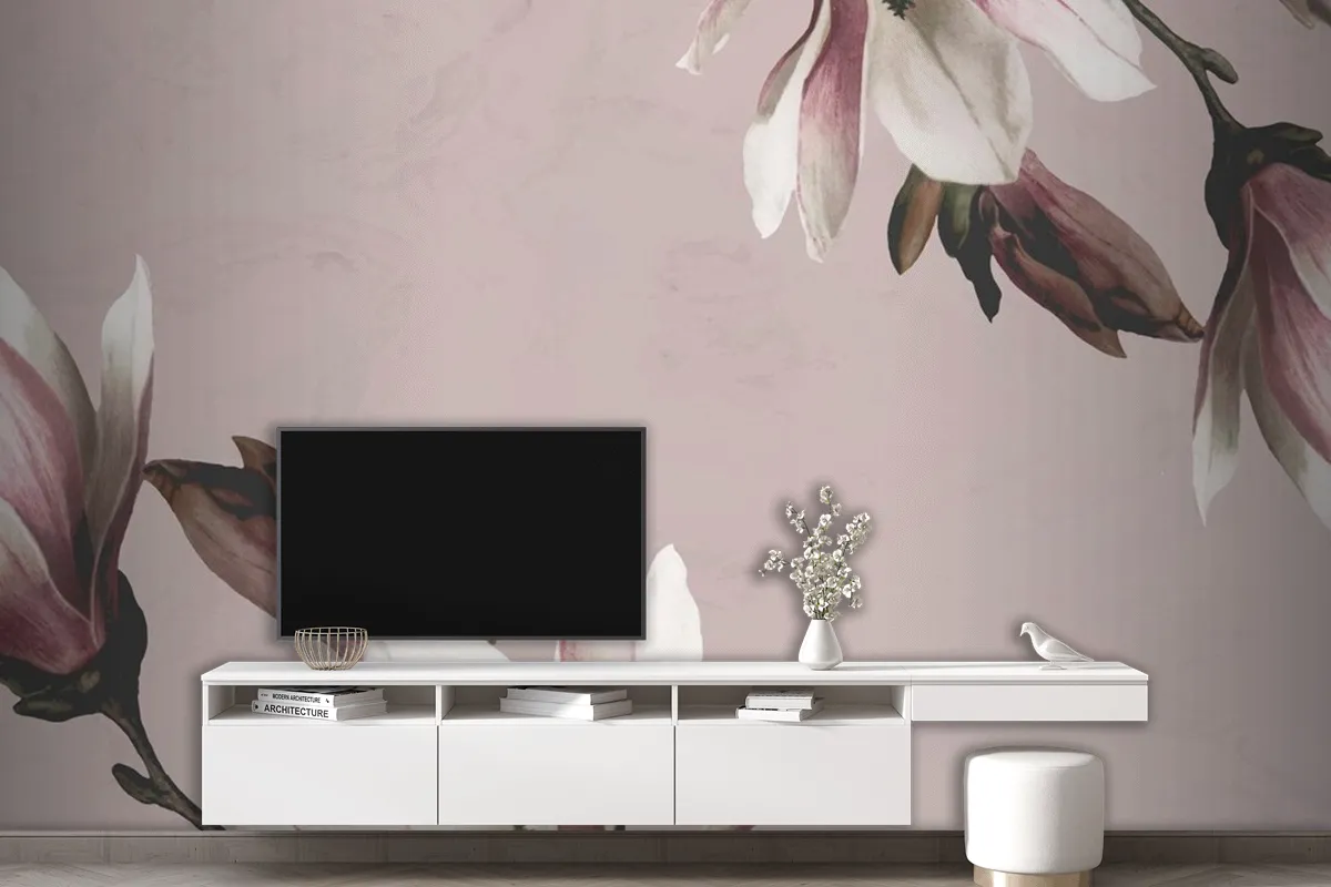 Bej Arka Plan Üzerinde Manolya Tv Arkası Duvar Kağıdı
