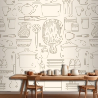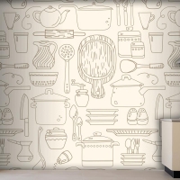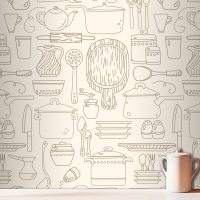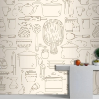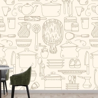Bej Duvar Kağıdı Duvarında Mutfak Gereçleri Ile Kusursuz Desen
