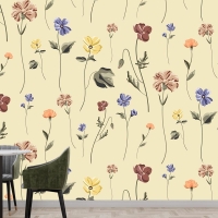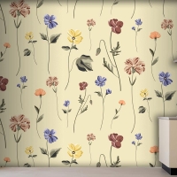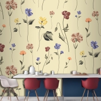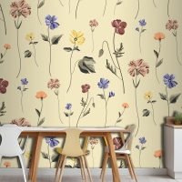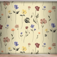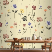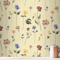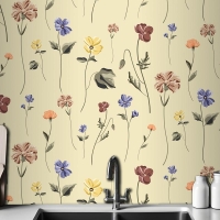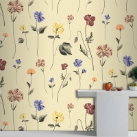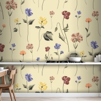 Bej Mutfak Duvar Kağıdı Duvarında Çiçek Açan Kusursuz Desen