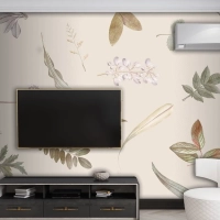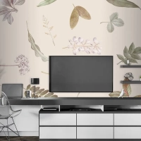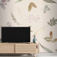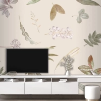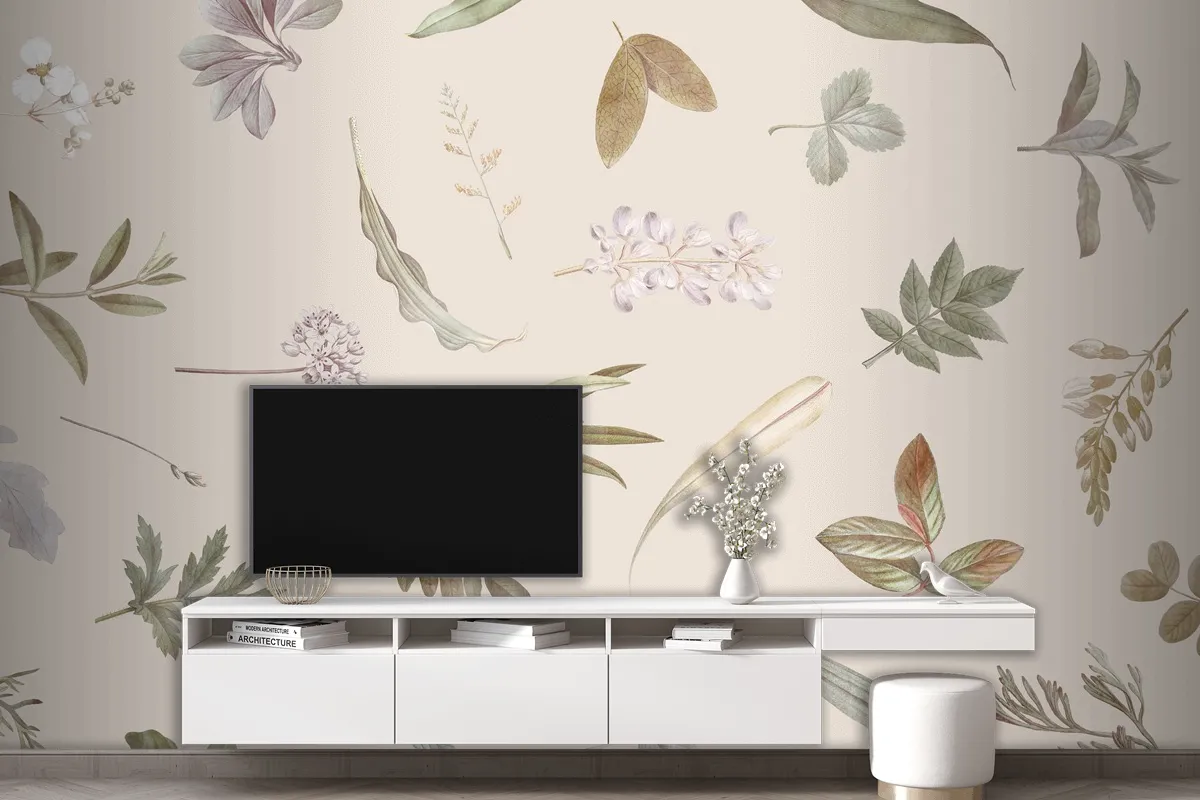 Bej Zemin Üzerine Yaprak Deseni Tv Arkası Duvar Kağıdı