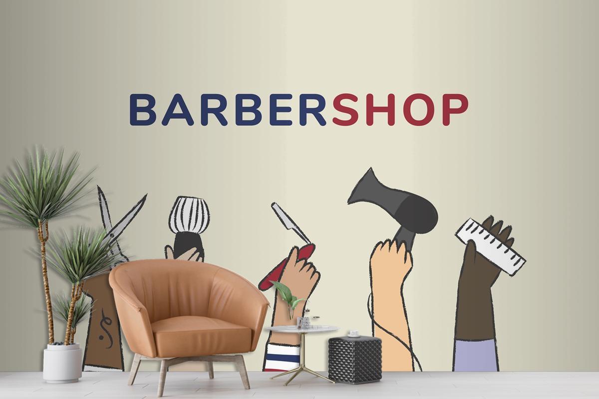 Berber Dükkanı Için Çizim Kuaför Duvar Kağıdı