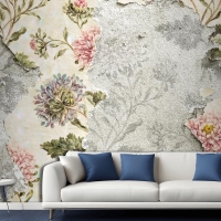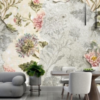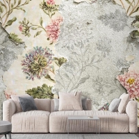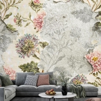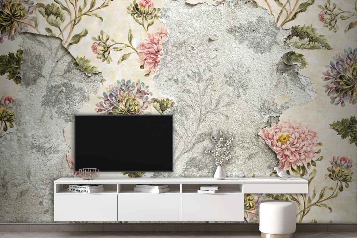 Beton Duvar Kağıdı Duvar Üzerine Çiçek Duvar Kağıdı Soyulması