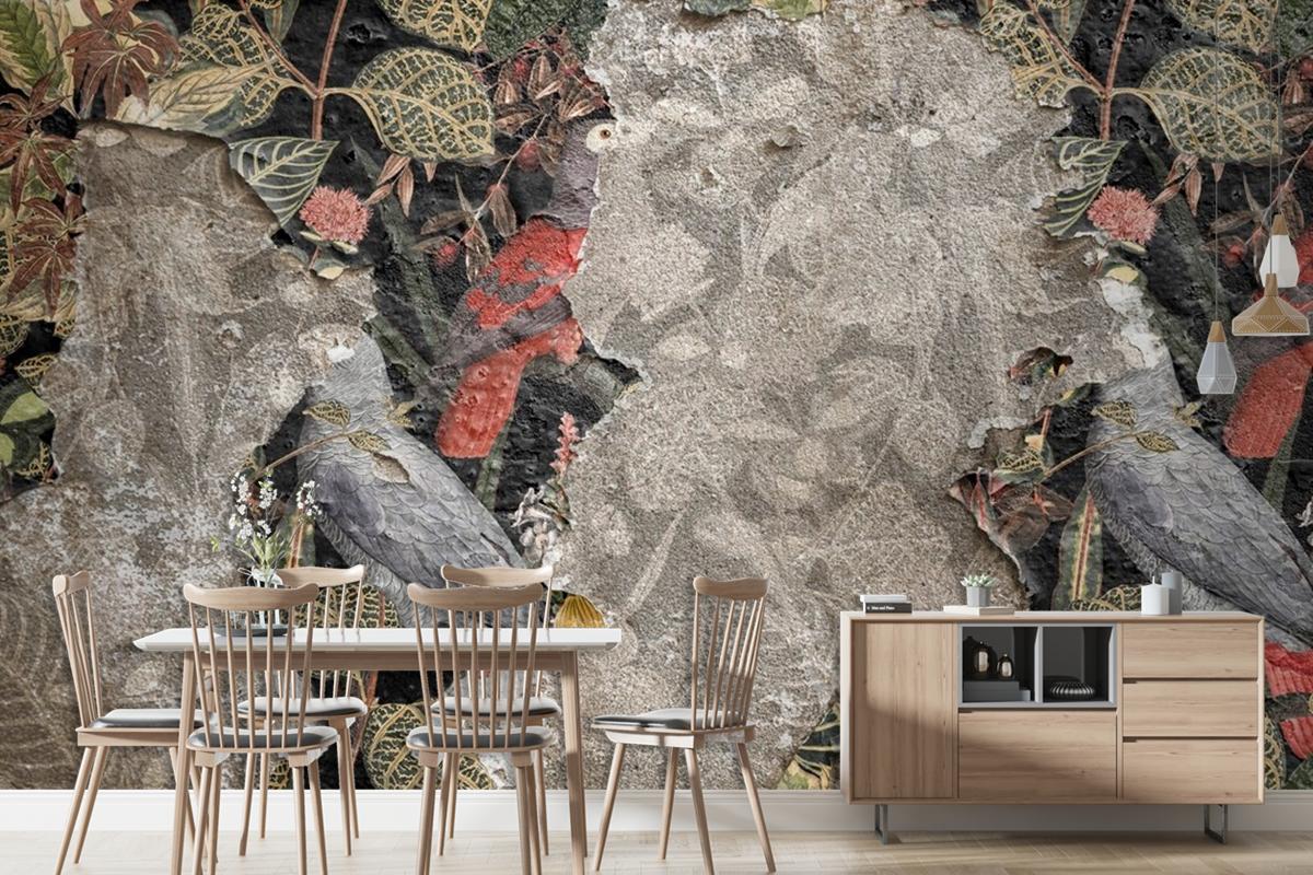 Beton Duvar Kağıdı Duvar Üzerine Çiçek Soyulması