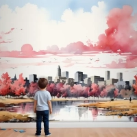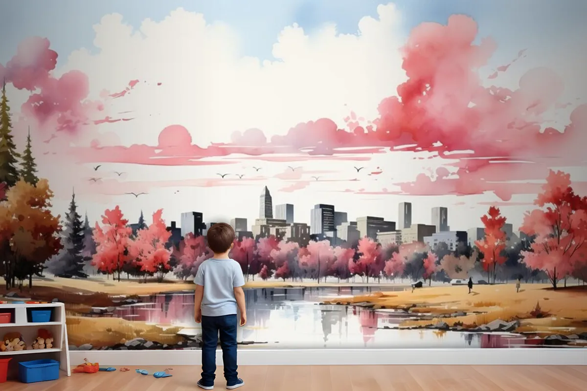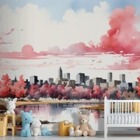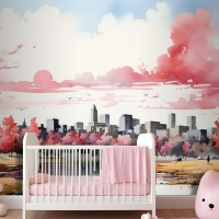 Beyaz Arka Plan Çocuk Odası Duvar Kağıdı Duvarında Geometrik Arazi