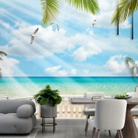 Beyaz Balkon Ve Mavi Deniz Duvar Kağıdı
