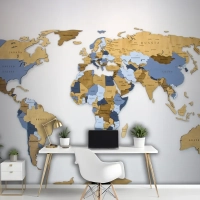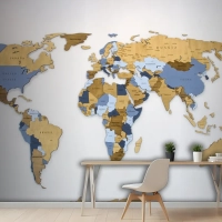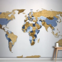 Beyaz Duvar Kağıdı Duvarında Ahşap Renkli Çok Katmanlı Dünya Haritası