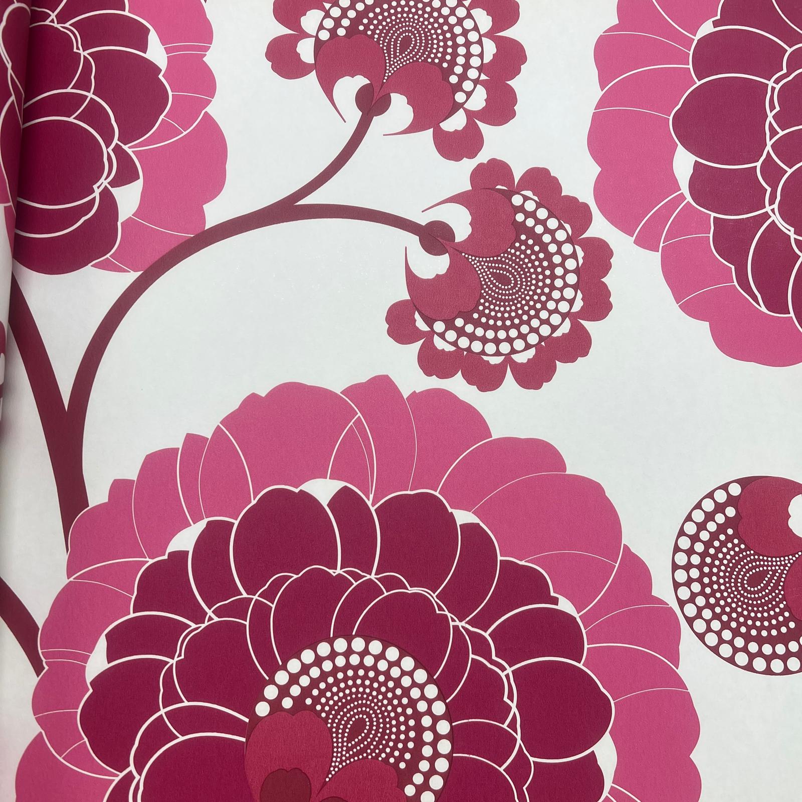 Beyaz Kırmızı Pembe Çiçek Desenli Duvar Kağıdı 111038