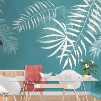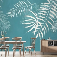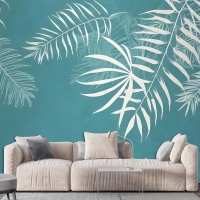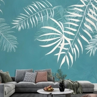 Beyaz Tropikal Yapraklar Duvar Kağıdı