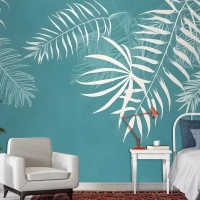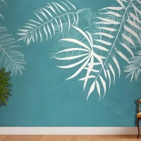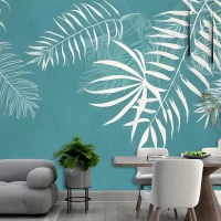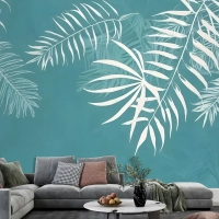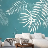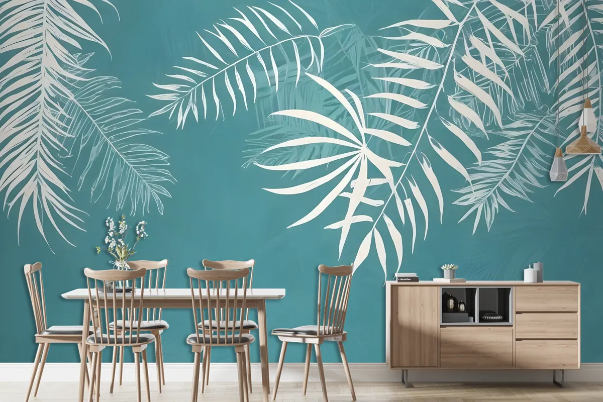 Beyaz Tropikal Yapraklar Duvar Kağıdı