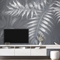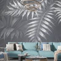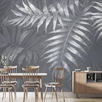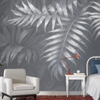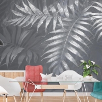 Beyaz Tropikal Yapraklı Duvar Kağıdı