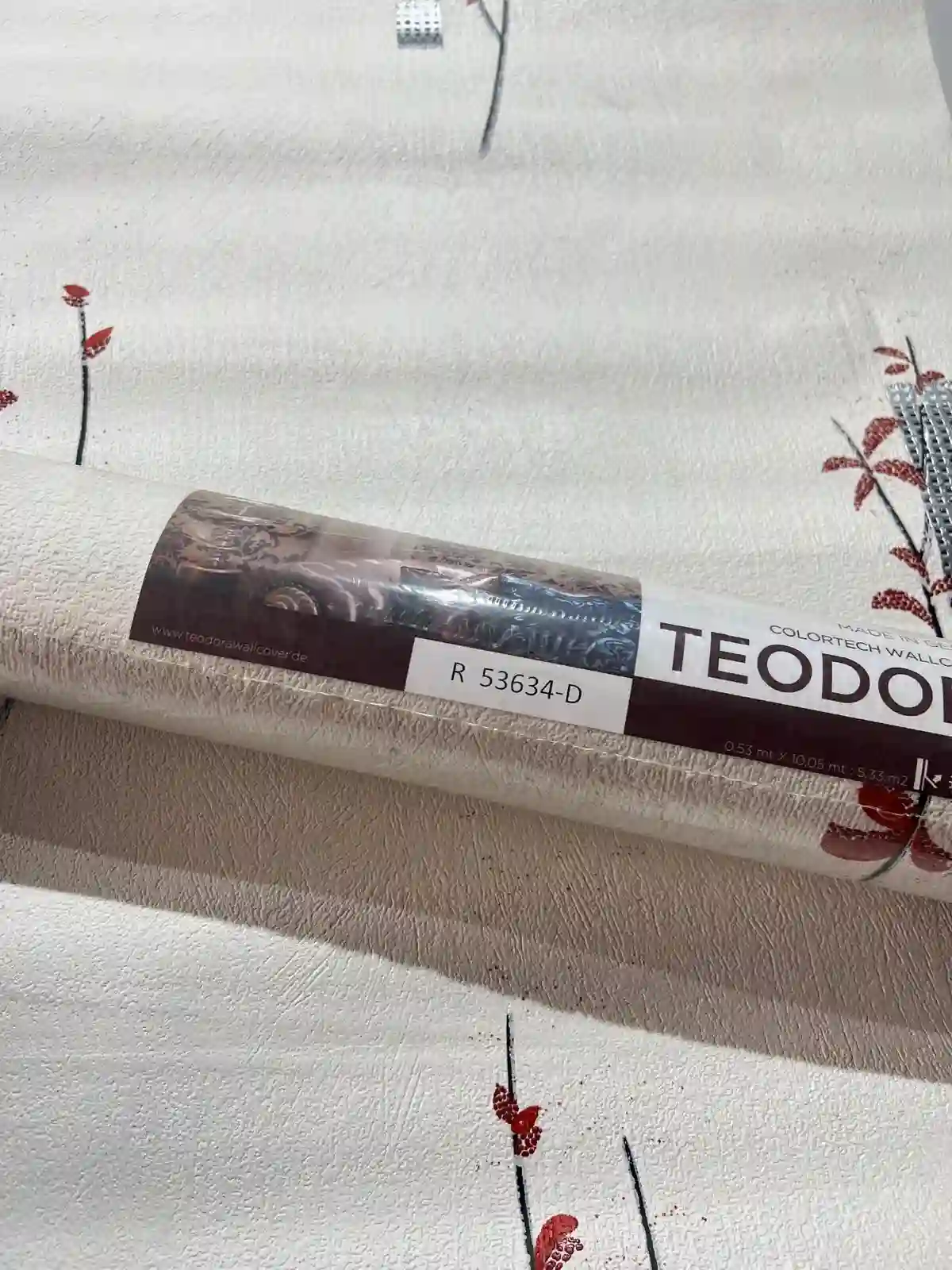Beyaz Üzeri Kırmızı Çiçekli Desen Ucuz Duvar Kağıdı 53634