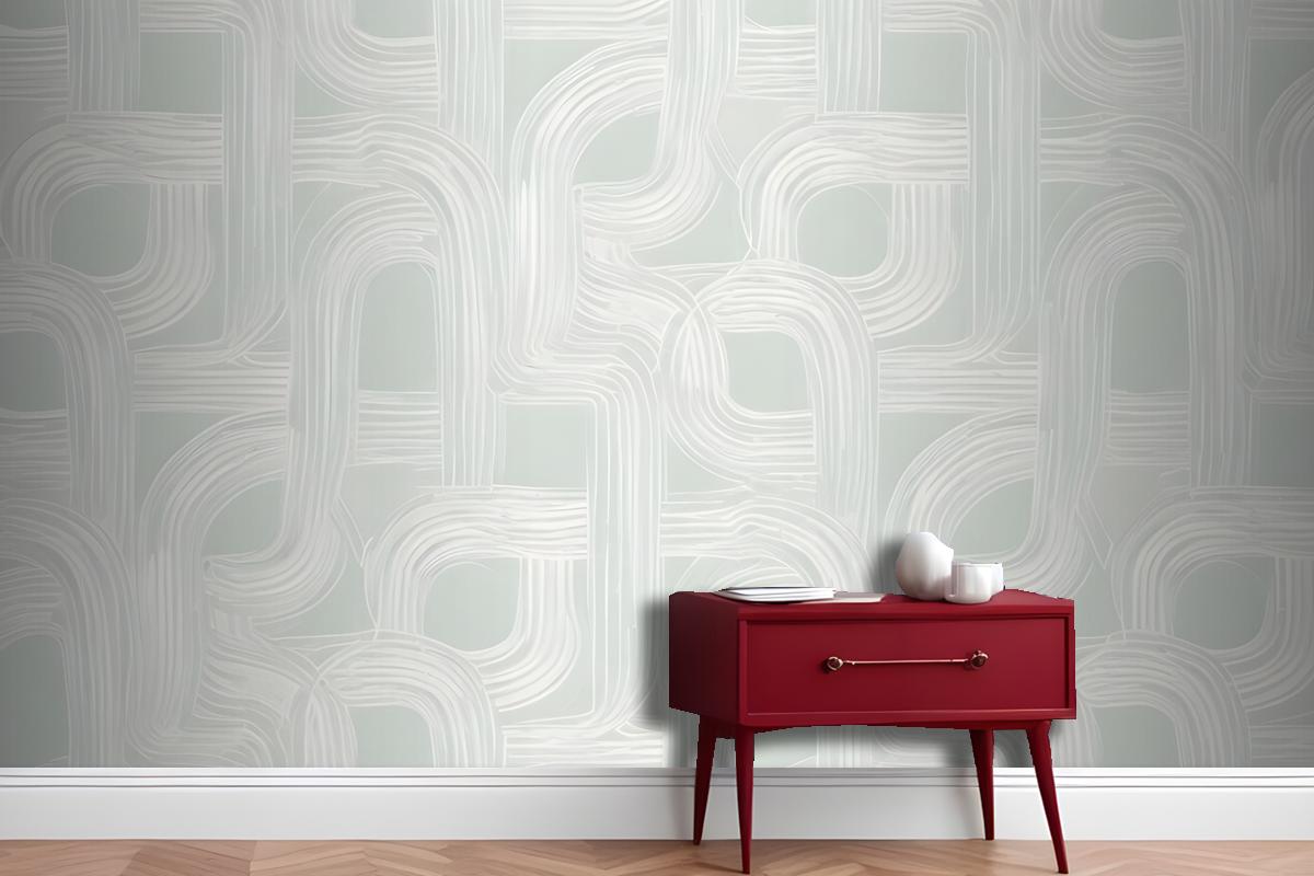 Beyaz Ve Açık Yeşil Tonlarında Birbirine Geçen Eğri Şekillerle Kesintisiz Geometrik Desen Antre Hol Koridor Duvar Kağıdı