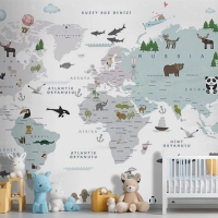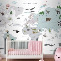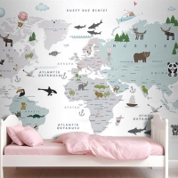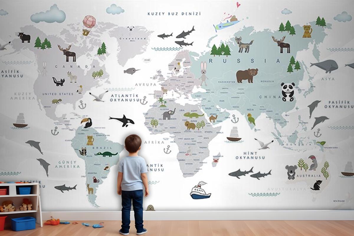 Beyaz Zemin Çocuk Odası Dünya Haritası