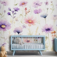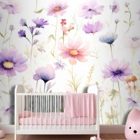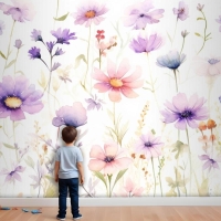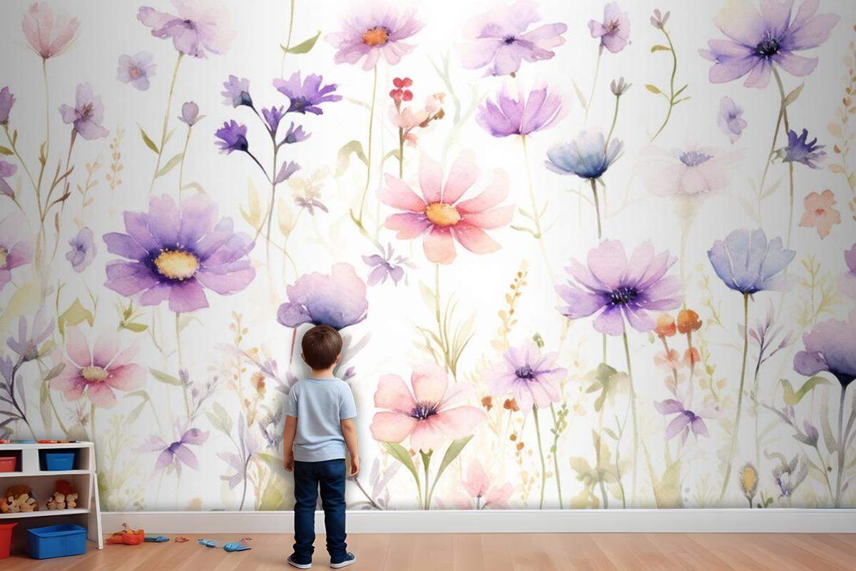 Beyaz Zemin Üzerine Bir Demet Çiçek Tablosu Çocuk Odası Duvar Kağıdı