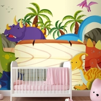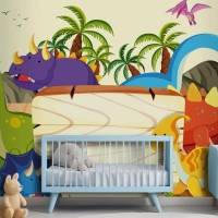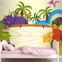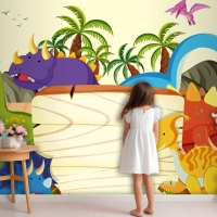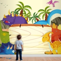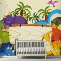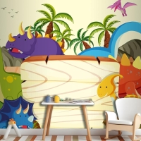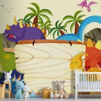 Bir Dinozor Ahşap Tahta Şablonu Çocuk Odası Duvar Kağıdı