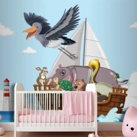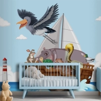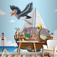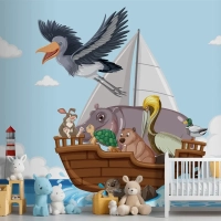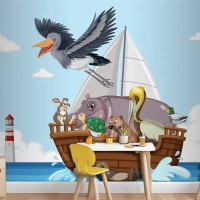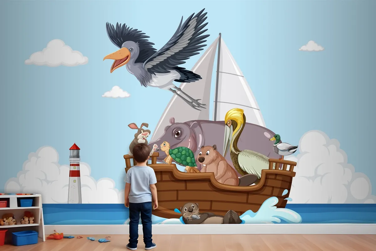 Bir Teknede Vahşi Hayvanlar Çocuk Odası Duvar Kağıdı