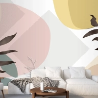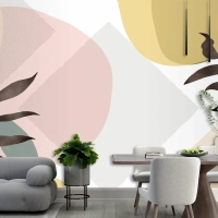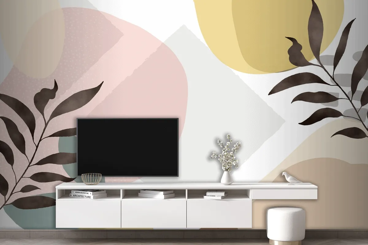Bitkilerle Minimal Elle Çizilmiş Arka Plan Oturma Odası Duvar Kağıdı