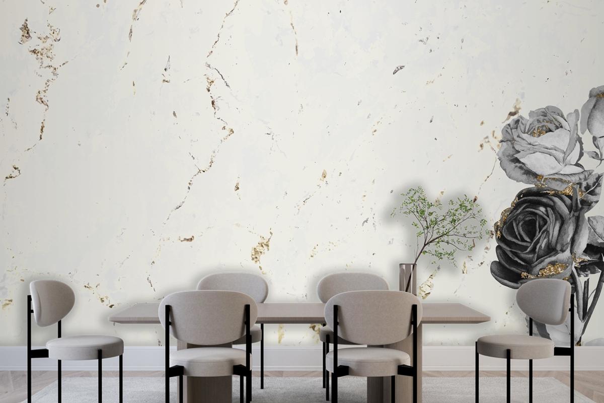 Boş Çiçek Pırıltılı Yemek Odası Duvar Kağıdı
