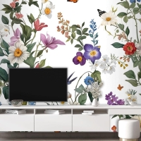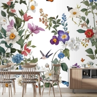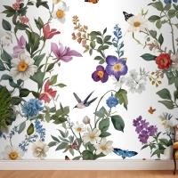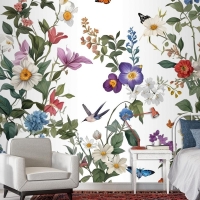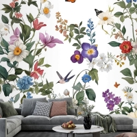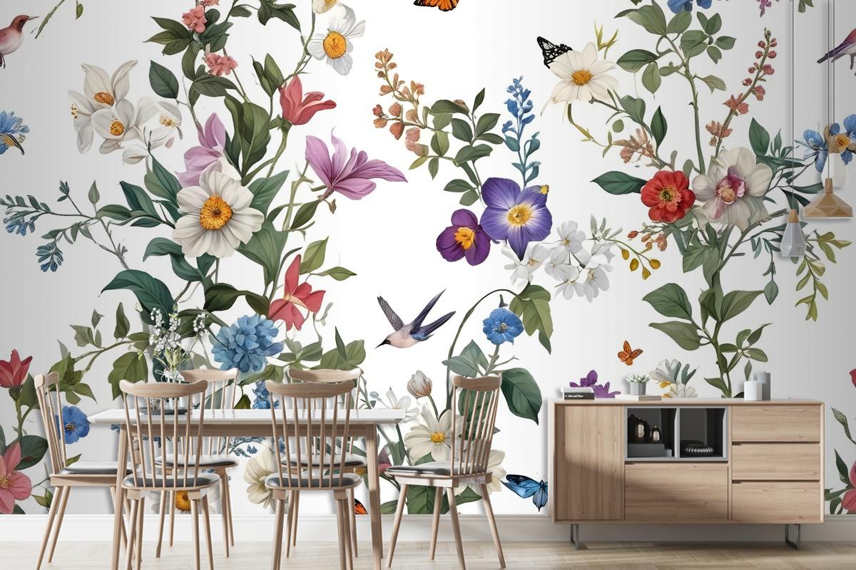 Botanik Çiçekler Kuşlar Duvar Kağıdı Ile Çiçekli