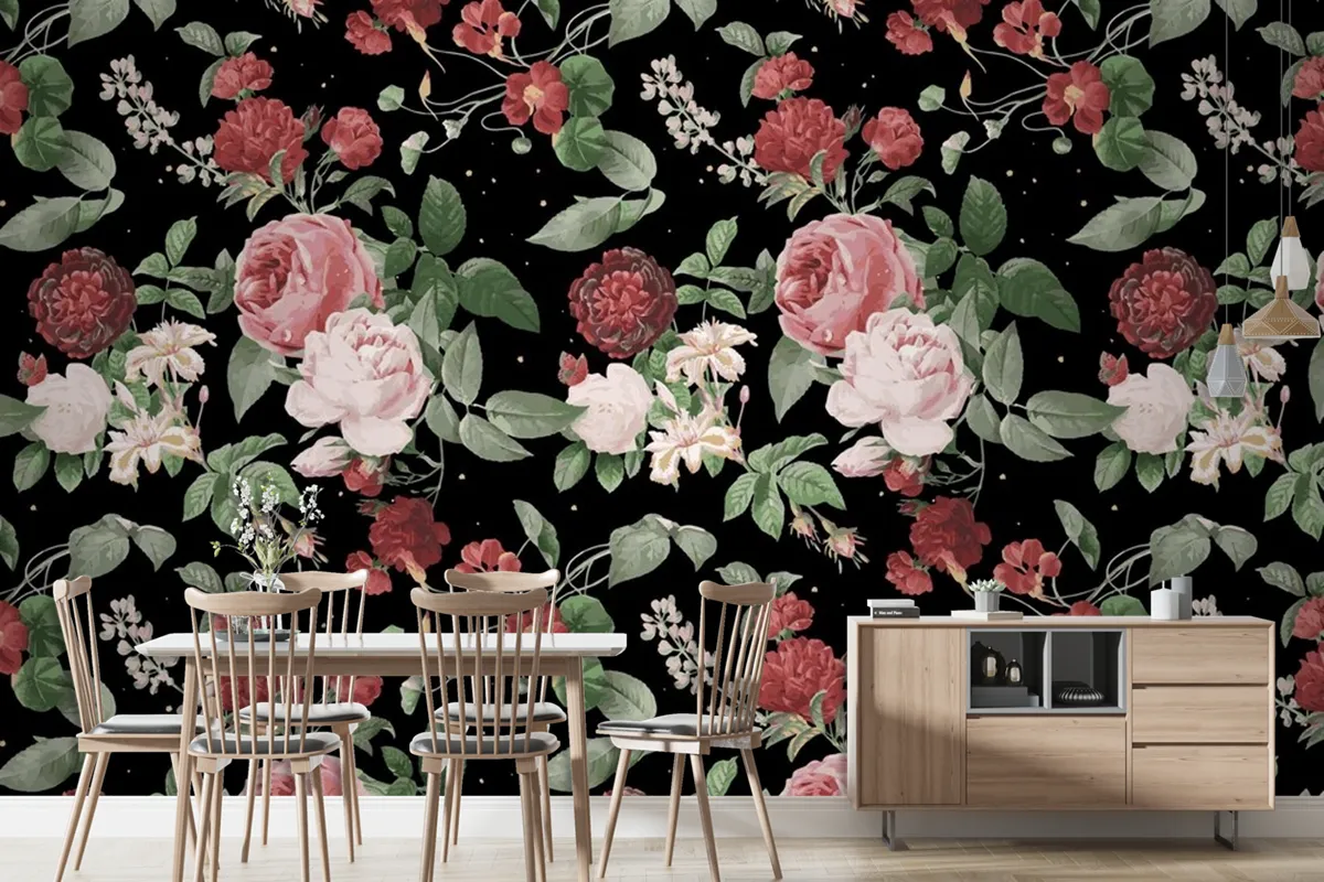 Botanik Sevgililer Günü Gül Deseni Suluboya Duvar Kağıdı