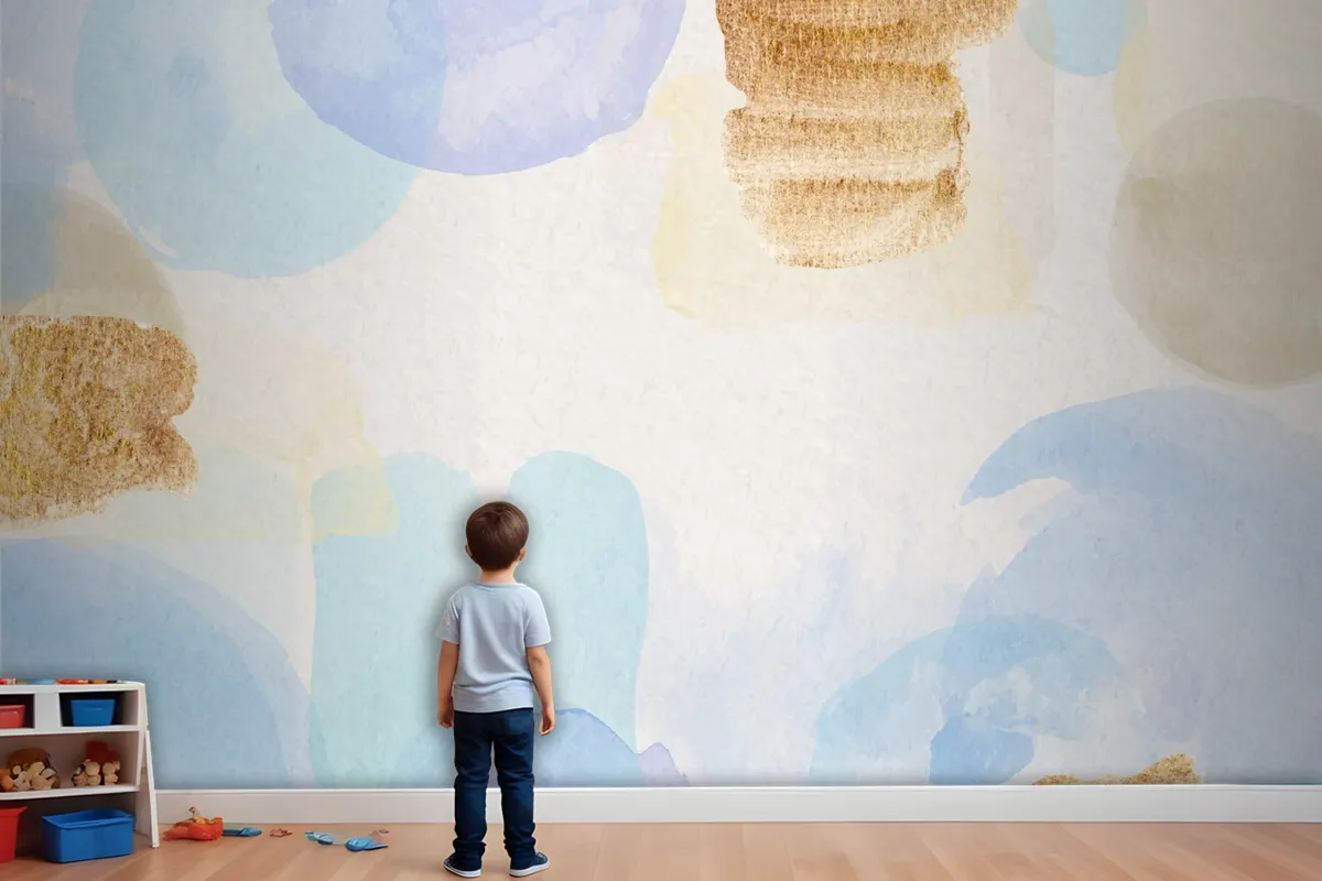 Boyalı Lekeli Suluboya Soyut Arka Plan Çocuk Odası Duvar Kağıdı