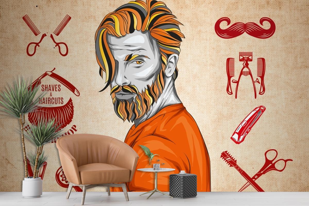 Boyalı Saç Erkek Kuaför Duvar Kağıdı
