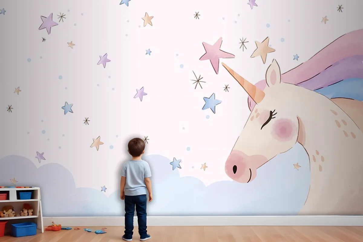 Boynuzlu At Unicorn Çocuk Odası Duvar Kağıdı