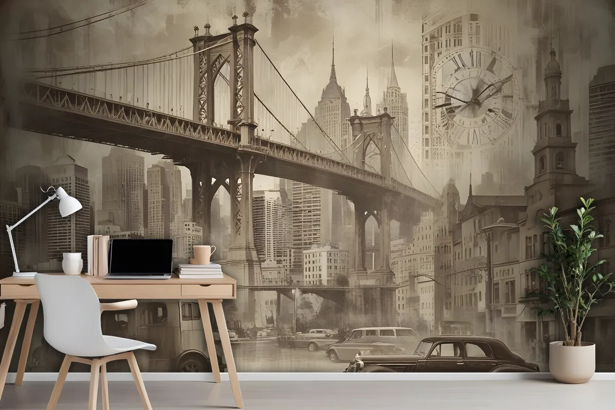 Brooklyn Köprüsü Ile Avrupa Vintage Şehri Duvar Kağıdı