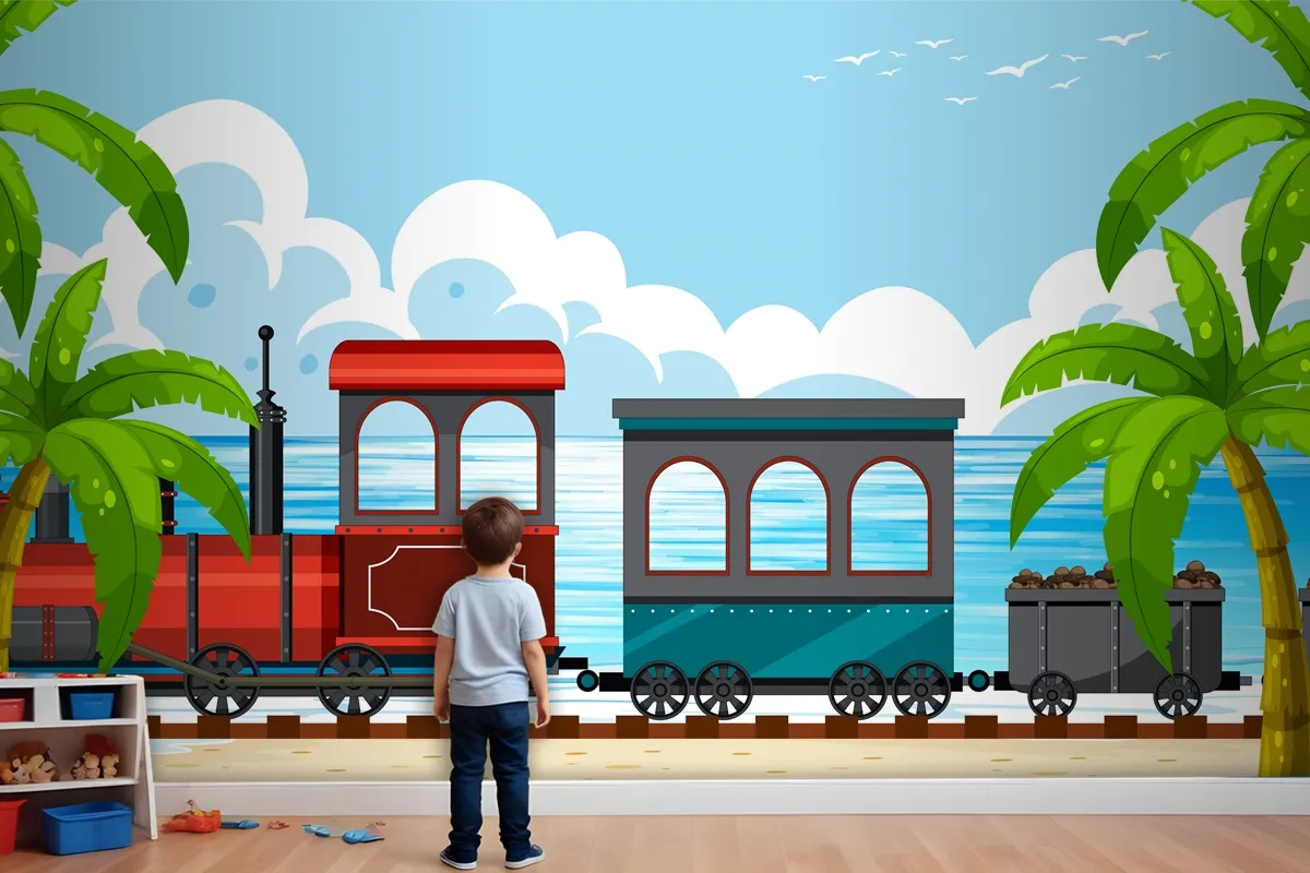 Buharlı Lokomotif Treni Boys Çocuk Odası Duvar Kağıdı Ile Açık Hava Sahnesi