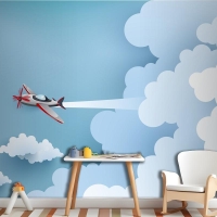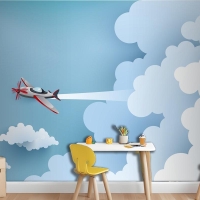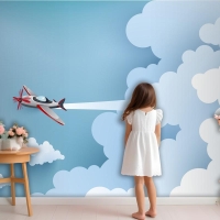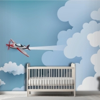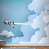Bulut Üzerinde Uçak Çocuk Odası Duvar Kağıdı