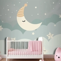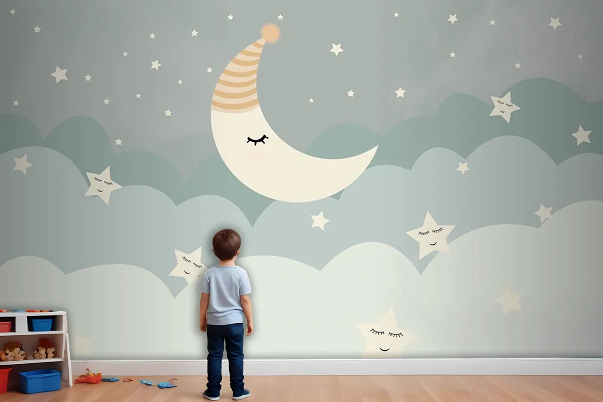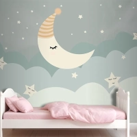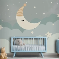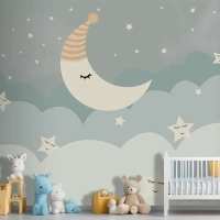 Bulutlar Ay Ve Yıldızlar Çocuk Odası Duvar Kağıdı