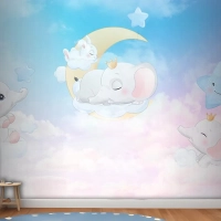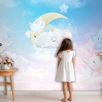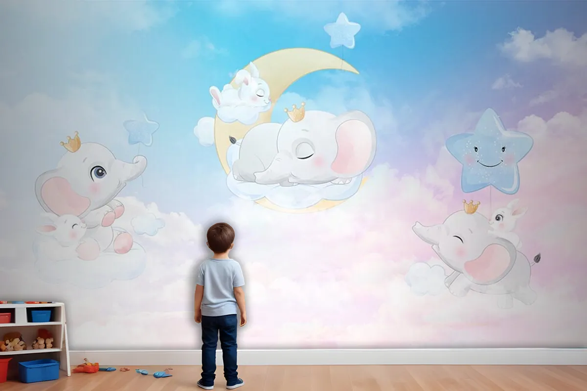 Bulutlar Üzerinde Mutlu Filler Çocuk Odası Duvar Kağıdı