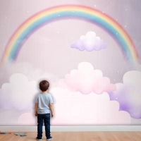 Bulutlar Ve Gökkuşağı Çocuk Odası Duvar Kağıdı