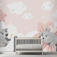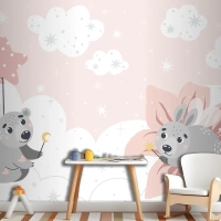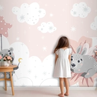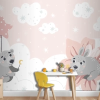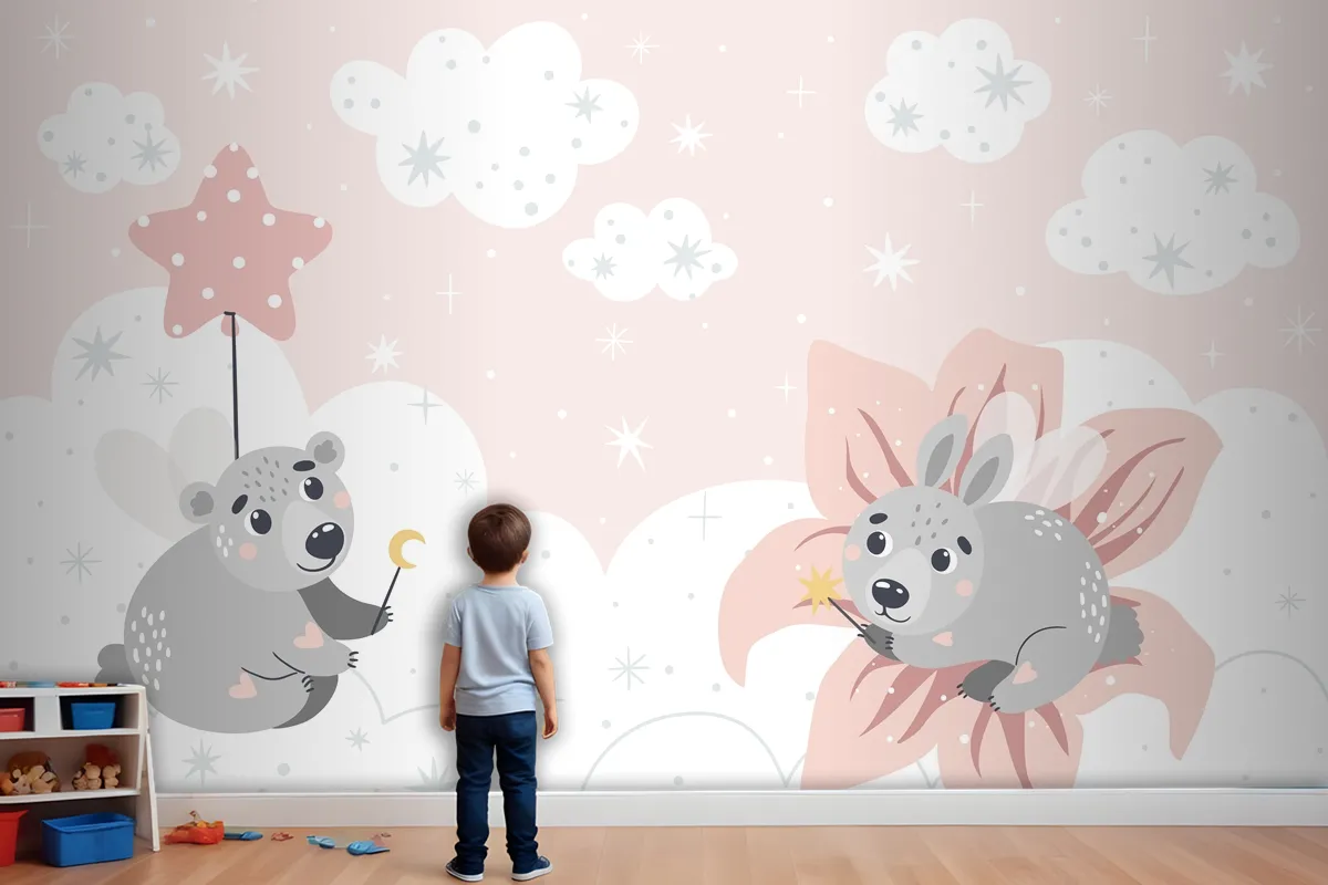 Bulutların Üzerinde Sevimli Masal Hayvanları Çocuk Odası Duvar Kağıdı Yazdırmaya Uygun