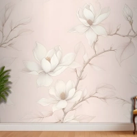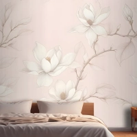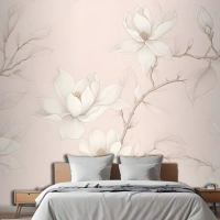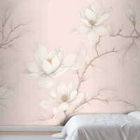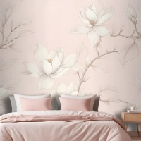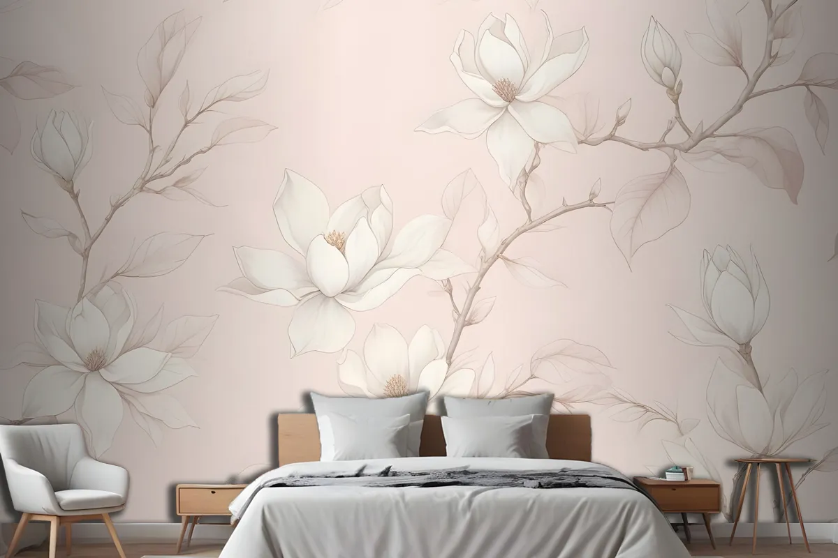 Büyük Elle Çizilmiş Kiraz Çiçeği Yatak Odası Duvar Kağıdı